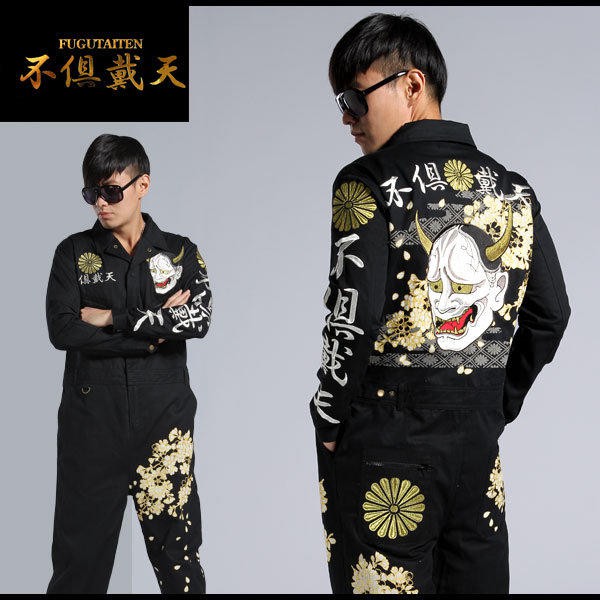 硬骨頭 日本不俱戴天般若櫻花和柄刺繡連身工作服特攻服暴走族非絡繰魂 蝦皮購物